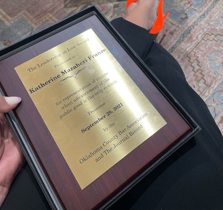 Leadership in Law” recognition awarded to Katherine Mazaheri on Law Day by Oklahoma County Bar Association & The Journal Record